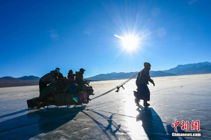 這個(gè)邊境小村3日迎來了一年一度的“趕羊”盛事。村民們將1400余只羊由岸邊通過厚實(shí)的冰面趕往湖心島牧場。普姆雍措被稱為“仙女之淚”,位于西藏山南市浪卡子縣,每到冬季極寒時(shí),便是羊群轉(zhuǎn)牧場的好時(shí)機(jī)。