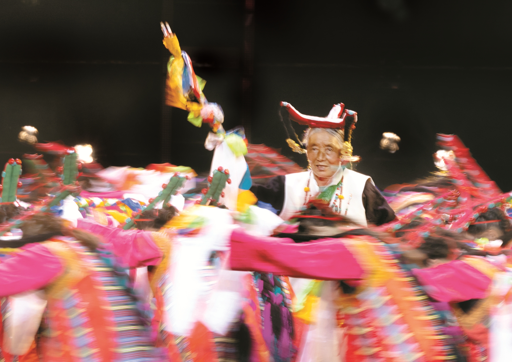 “諧欽”是西藏傳統(tǒng)歌舞節(jié)目,歷史悠久,深受廣大群眾喜愛。編導(dǎo)吳金曲珍介紹說:“這個節(jié)目是根據(jù)熱堆村的一個原生態(tài)舞種改編而成的,里面表現(xiàn)的是豐收的喜悅和對家鄉(xiāng)景色的贊美,節(jié)目中表演的34名演員包括一位老阿媽在內(nèi),都是群眾?!?/p>