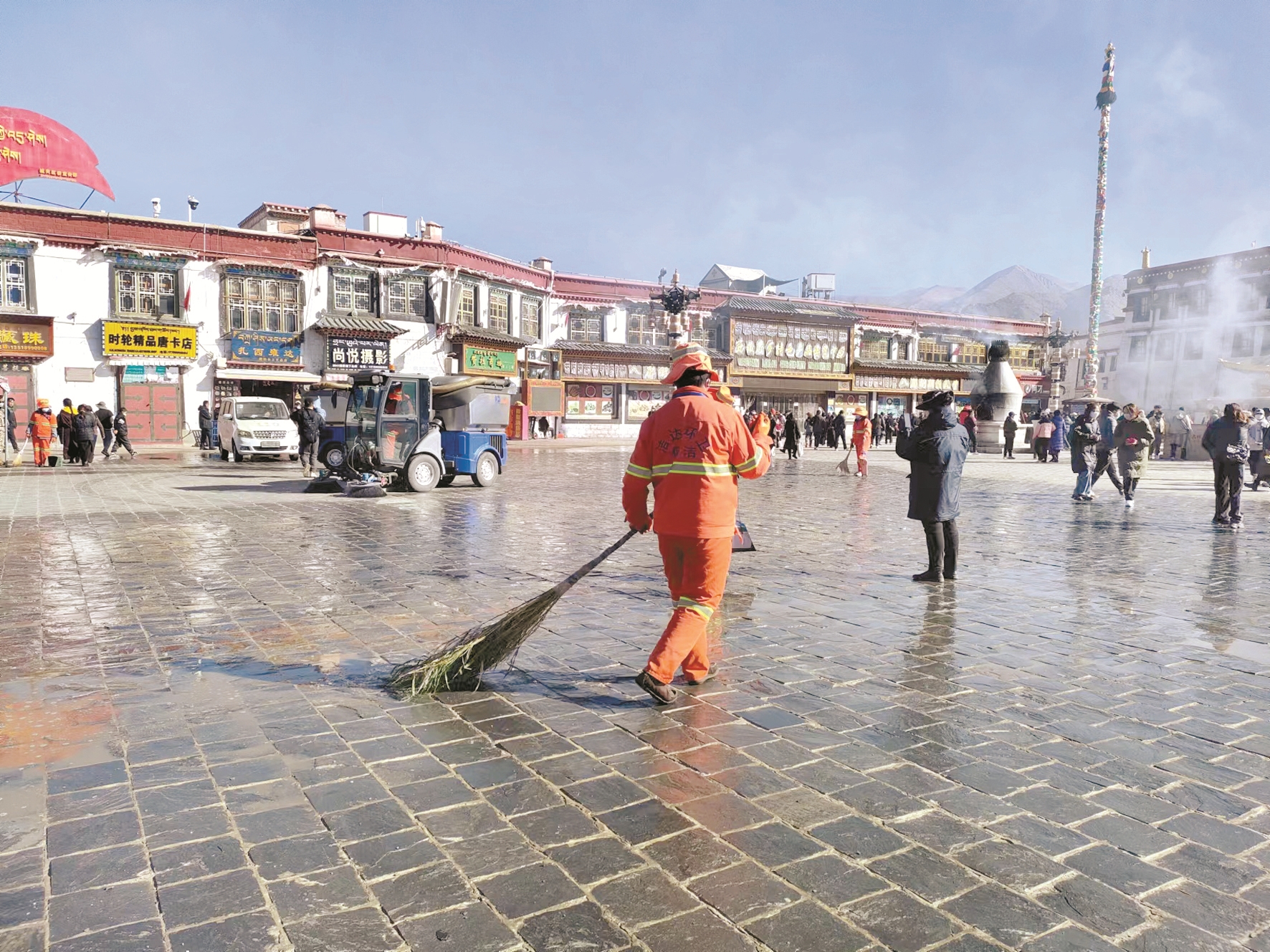 隨著藏歷新年臨近,西藏自治區(qū)拉薩市環(huán)衛(wèi)及園林工人多措并舉,對城市重點區(qū)域、旅游場所、背街小巷等開展綜合衛(wèi)生整治行動,在美化市容市貌的同時,力爭為廣大市民營造一個干凈舒適的城市環(huán)境,喜氣洋洋迎接藏歷新年的到來。