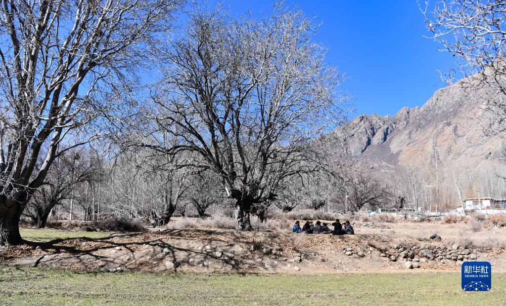 山南市加查縣拉崗村村民在核桃樹下聊天拉家常(2月1日攝)。新華社記者晉美多吉 攝
