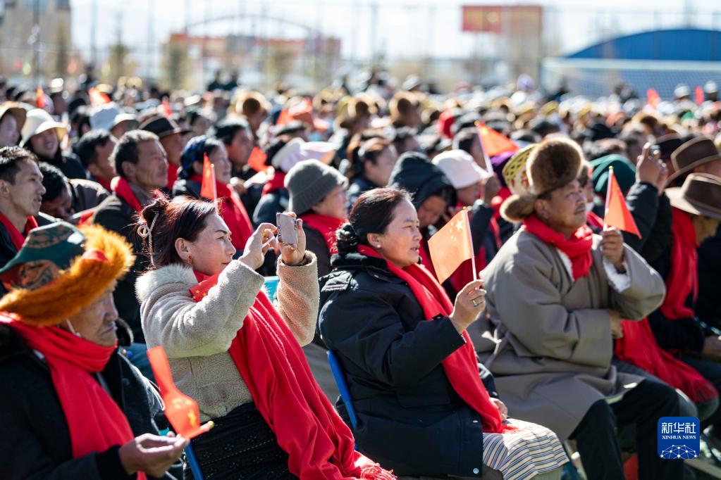 2月19日,人們在西藏拉薩市堆龍德慶區(qū)濱河體育公園觀看文藝演出。新華社記者 孫非 攝