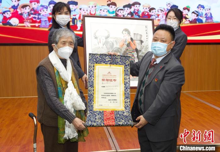 圖為活動當天知名畫家吳茜向中國藏學研究中心西藏文化博物館捐贈西藏主題作品。中國藏學研究中心供圖