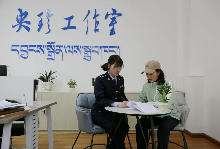 圖為林芝市稅務(wù)局“央珍工作室”青年干部為納稅人開展稅收政策輔導(dǎo)。圖片由西藏稅務(wù)提供