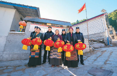 圖為西藏亞東出入境邊防檢查站移民管理警察看望慰問“三個老阿媽”。李錦輝攝
