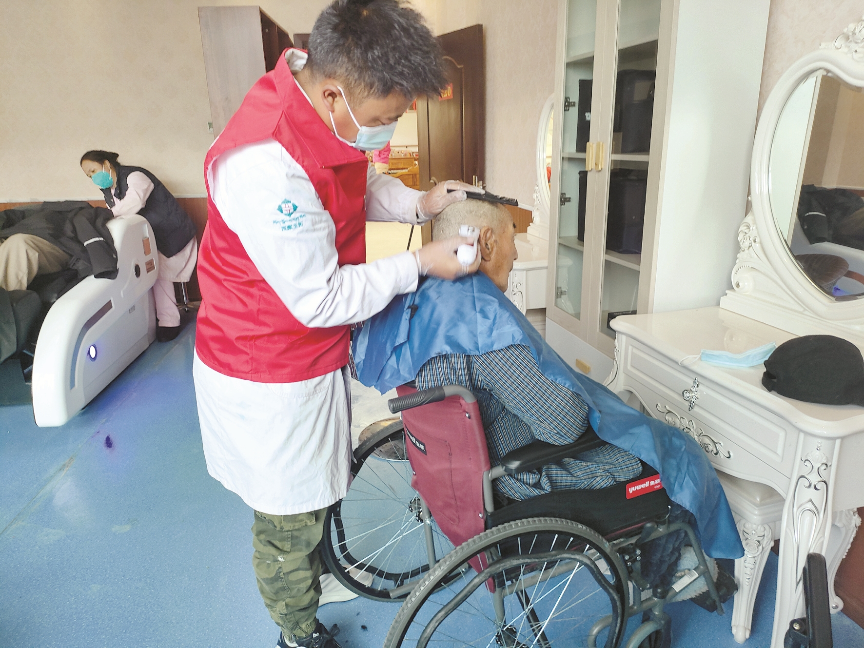 圖為學(xué)雷鋒活動(dòng)日當(dāng)天,志愿者為市社會福利院老人理發(fā)。 拉薩融媒記者 李從芳攝
