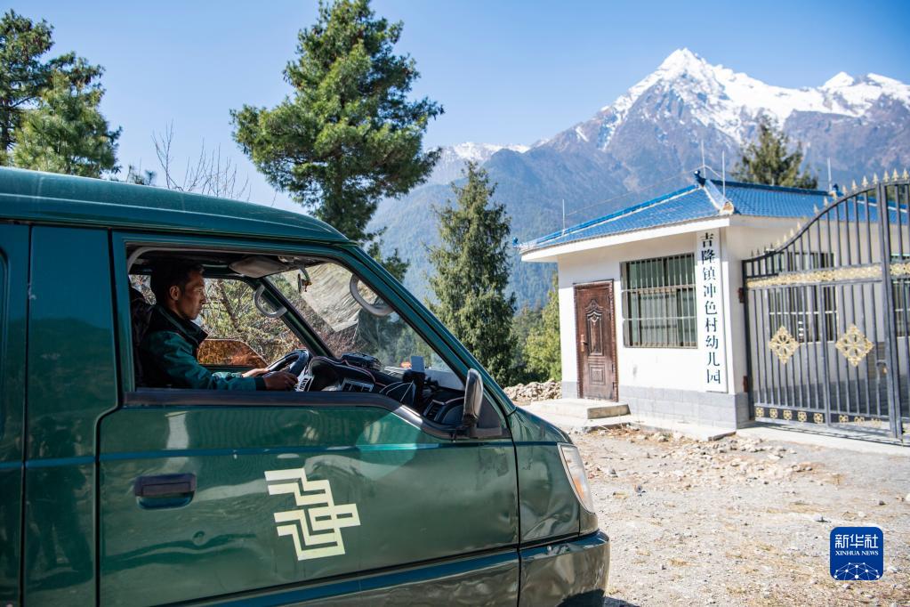 大約過了半個小時,巴桑頓珠到達(dá)第一站——沖色村幼兒園。他拿起一疊捆好的報紙,放到了收發(fā)室門口。