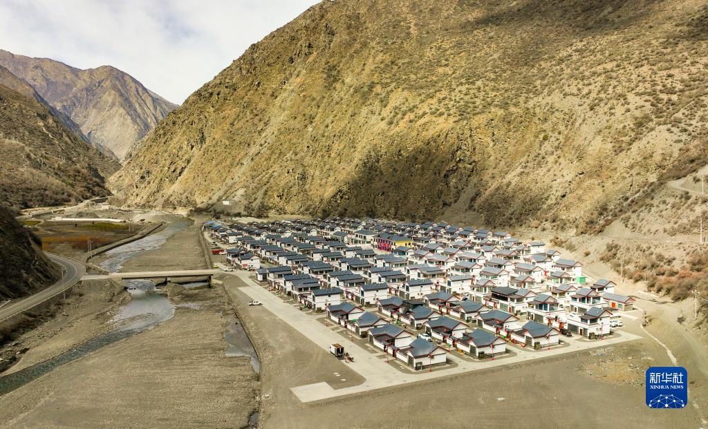 這是西藏山南隆子縣斗玉珞巴民族鄉(xiāng)繞讓搬遷安置點(diǎn)(2023年2月15日攝,無(wú)人機(jī)照片)。新華社記者 晉美多吉 攝