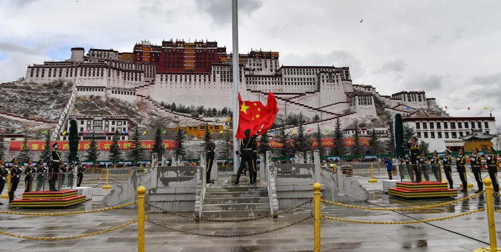 布達(dá)拉宮廣場舉行升旗儀式(3月28日攝)。新華社記者晉美多吉 攝