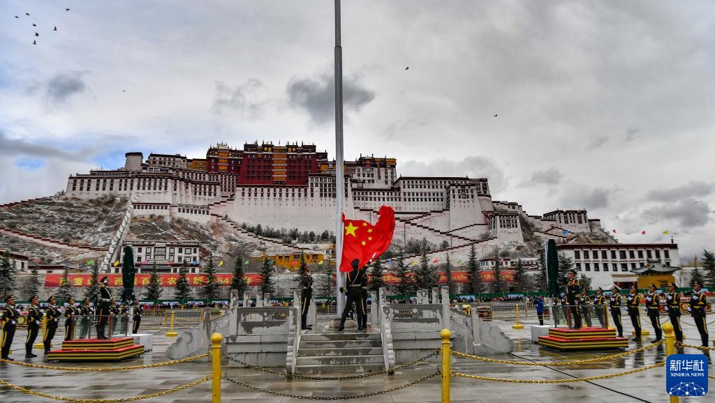 3月28日,拉薩布達(dá)拉宮廣場舉行升旗儀式。新華社記者 晉美多吉 攝