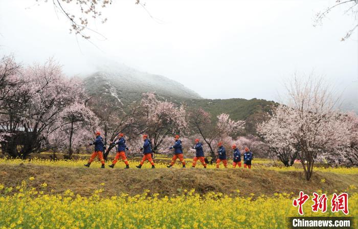 林芝市森林消防支隊指戰(zhàn)員穿梭在桃林中,對景區(qū)重點部位和消防設施進行消防巡查,及時應對可能發(fā)生的突發(fā)事件,做好滅火救援各項準備工作。