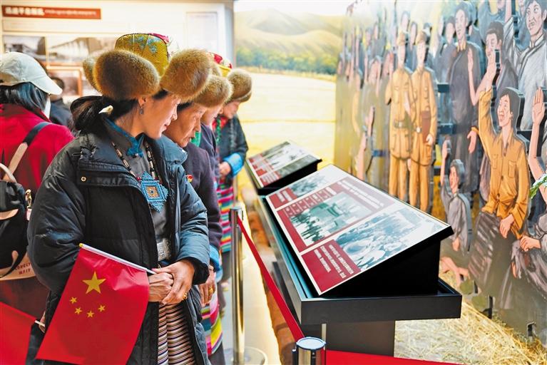 圖為各族干部群眾參觀西藏民主改革第一村陳列館。記者 巴桑頓珠 攝