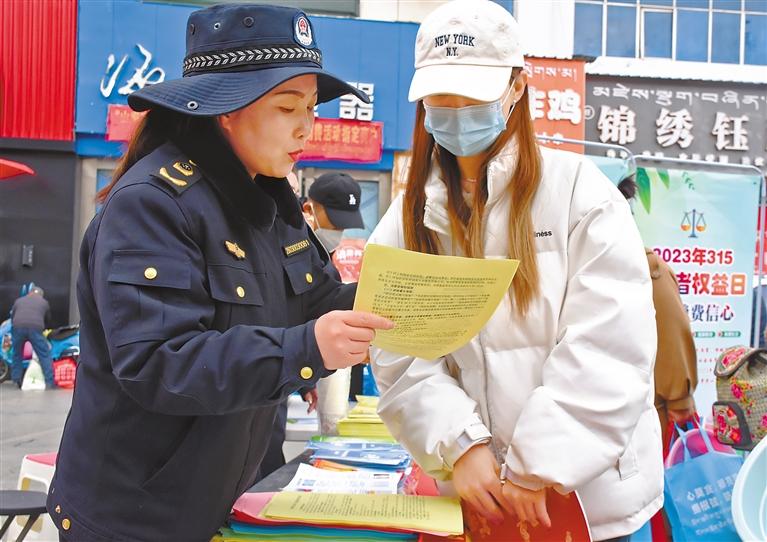 圖為今年“3·15”期間,山南市監(jiān)局工作人員向市民宣講消費者權益保護知識。劉楓 攝