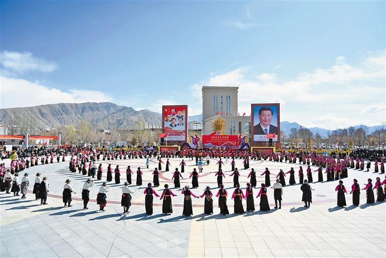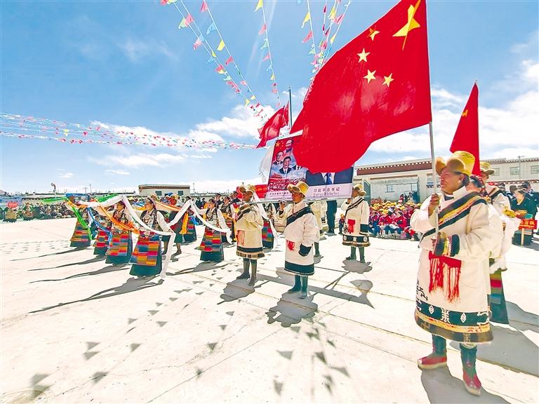 悠揚的歌聲獻給黨,歌唱黨的英明領導;歡快的舞蹈跳起來,跳出人民幸福生活。從珠峰腳下到年楚河畔,從高原牧場到山谷林地,處處升起面面五星紅旗,贊美共產(chǎn)黨的歌聲響徹天際,匯聚起強大動能。