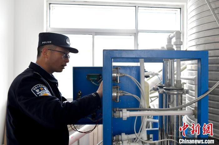 民警李加潘正在檢修保養(yǎng)自來水凈化設(shè)備。 李林 攝