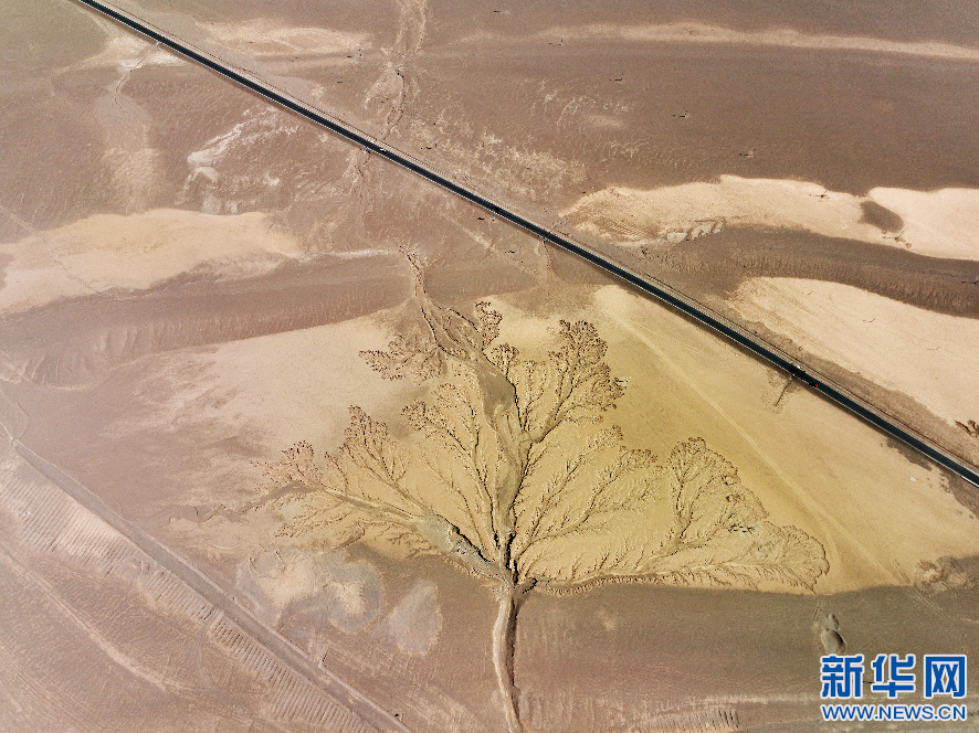 這是4月8日拍攝的位于阿里地區(qū)改則縣的“大地之樹”景觀(無人機(jī)照片)。 新華網(wǎng)發(fā) 曹枝清 攝