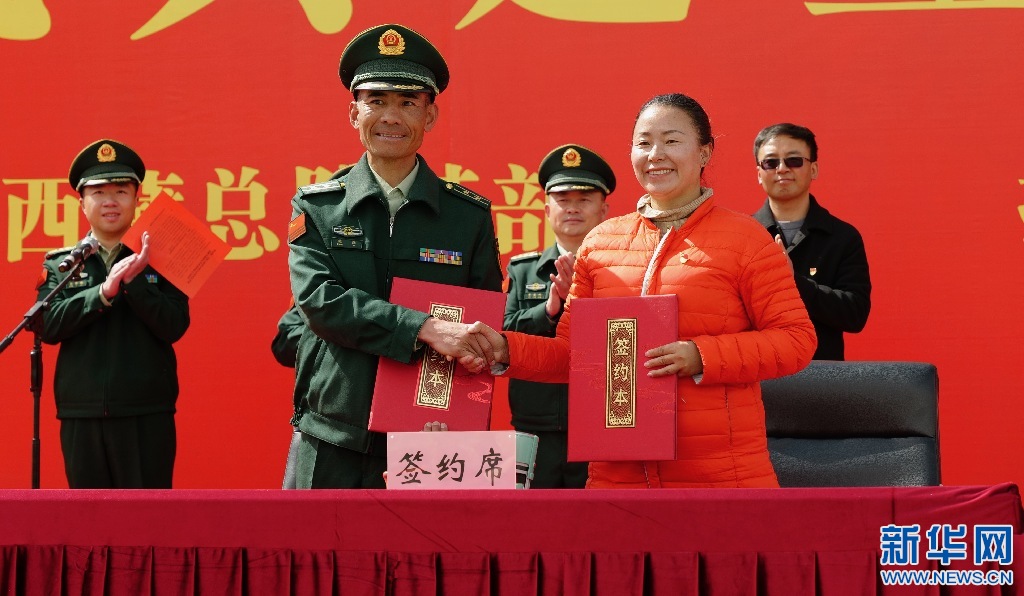14日上午,武警西藏總隊(duì)某部與拉薩市第八中學(xué)在拉薩舉行軍民聯(lián)誼共育簽約儀式,來(lái)自武警總隊(duì)某部的官兵和拉薩市第八中學(xué)的師生約400人參加了簽約儀式。