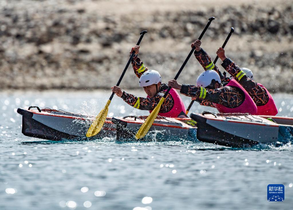 4月15日,選手們?cè)?00米靜水漂流筏排位賽中。新華社記者 孫非 攝