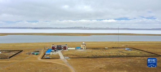 俯瞰中國科學(xué)院納木錯(cuò)多圈層綜合觀測(cè)研究站(無人機(jī)照片,4月13日攝)。新華社記者 姜帆 攝