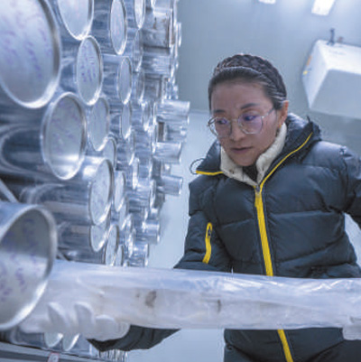 德吉至今還記得第一次和老師們見到冰芯的場景。那是她剛讀研究生的時(shí)候,跟著研究團(tuán)隊(duì)到西北處理冰芯。在冷庫里,老師們小心翼翼地把圓柱形的冰芯從中間分開,切成兩半,并按規(guī)范進(jìn)行分類和保存。德吉得知,這些樣本一半會(huì)在冷庫里保存,而另一半將會(huì)被用來開展成分分析,從中解讀其記錄的氣候變化。