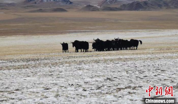 圖為巡護(hù)中,成群的野牦牛。謝昆軍供圖