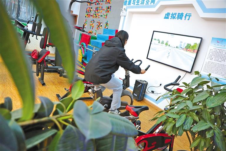 “騎上車子后,腳要用固定裝置固定好,目視前方……”在虛擬騎行區(qū),索央在大屏幕上設定好自行車對應的虛擬場景后,開始向體驗群眾示范如何正確進行虛擬騎行。