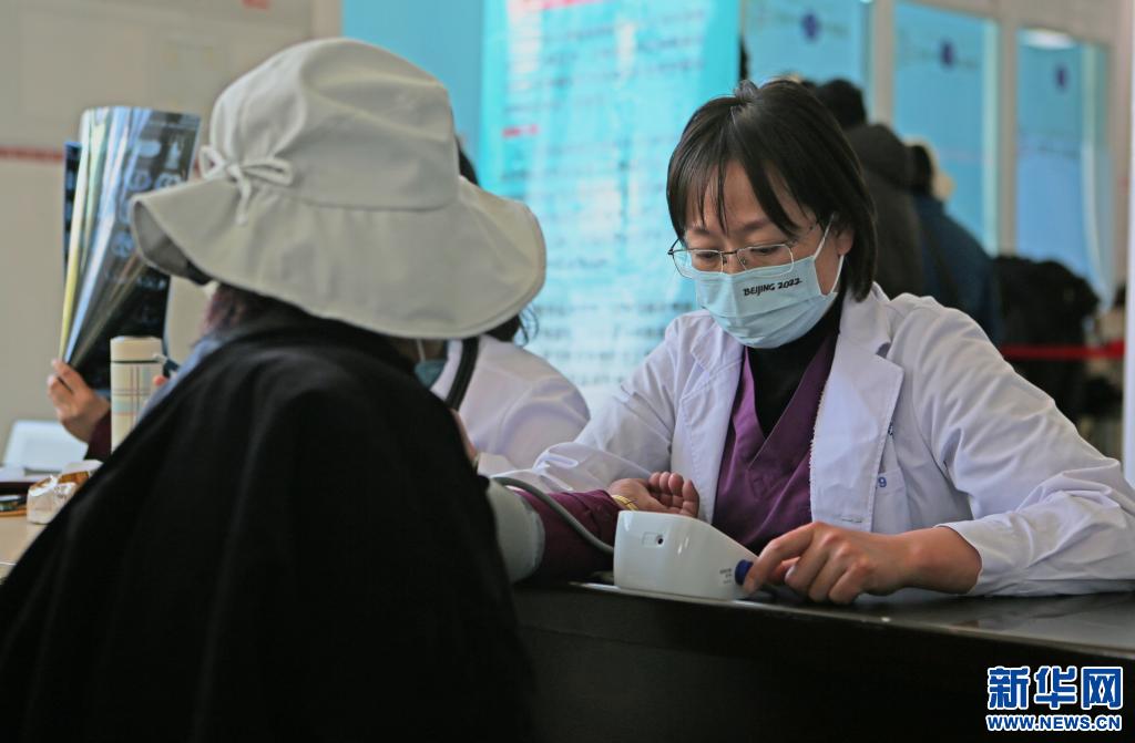 圖為“京藏攜手,護佑藍唇”義診活動現(xiàn)場,醫(yī)生在為患者測量血壓。(5月5日攝)
