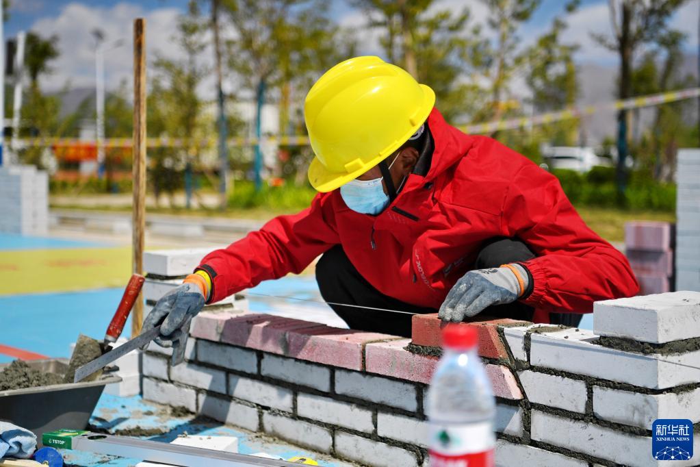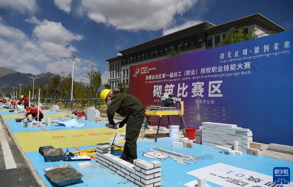 5月10日拍攝的西藏自治區(qū)第一屆技工(職業(yè))院校職業(yè)技能大賽砌筑比賽現(xiàn)場。新華社記者 張汝鋒 攝