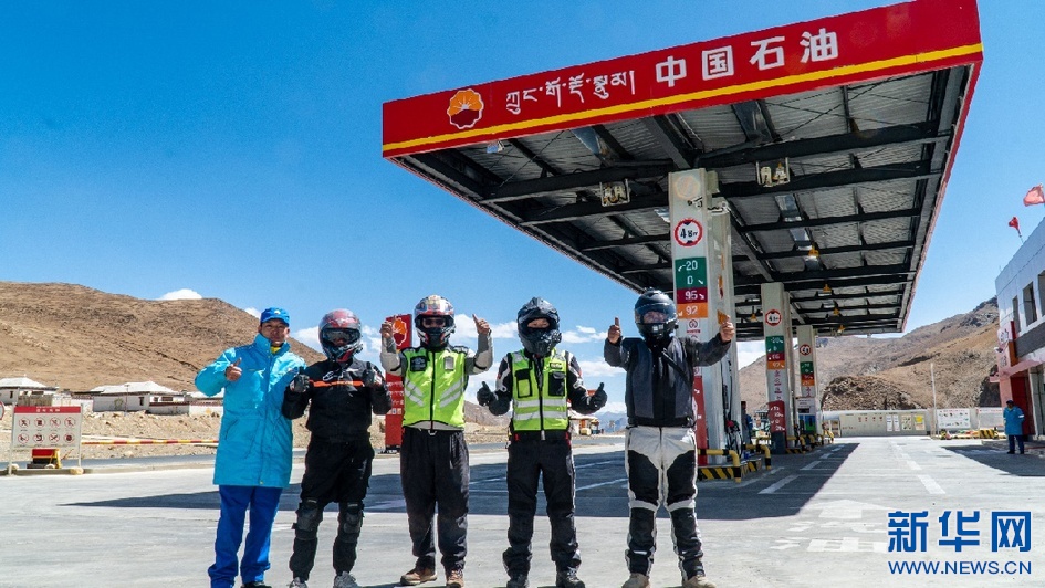 邊巴頓珠正在為游客的摩托車(chē)加油(5月16日攝) 。新華網(wǎng)發(fā) 洛桑旺堆 攝
