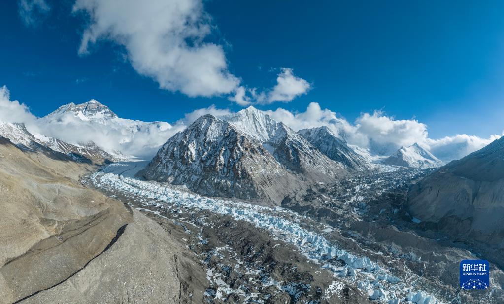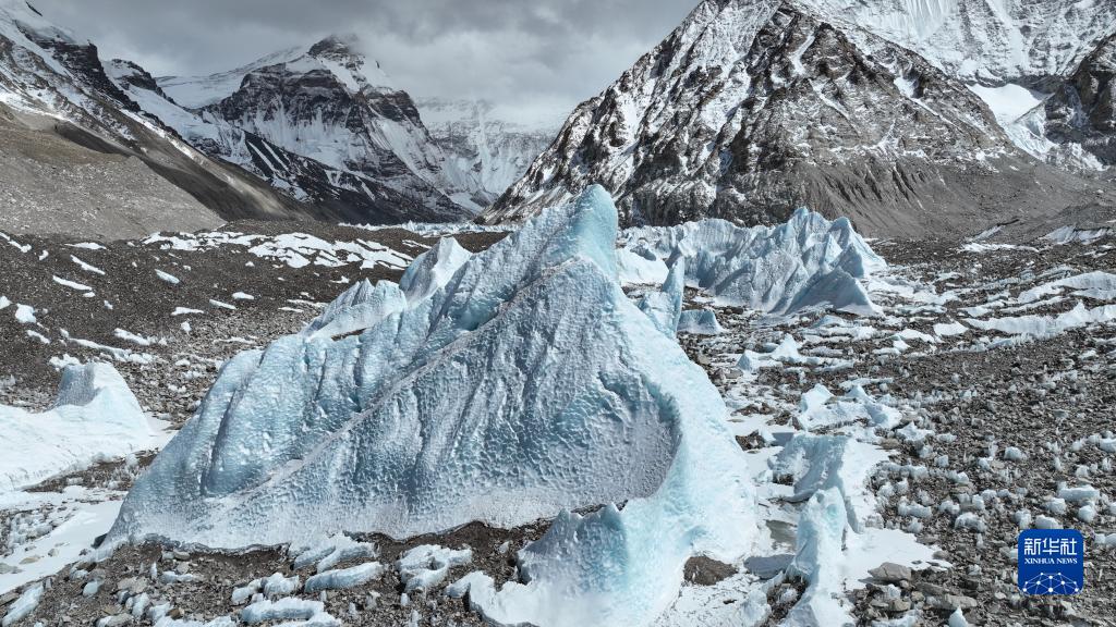 這是珠峰腳下的中絨布冰川(5月15日攝,無人機(jī)照片)。新華社記者 孫非 攝