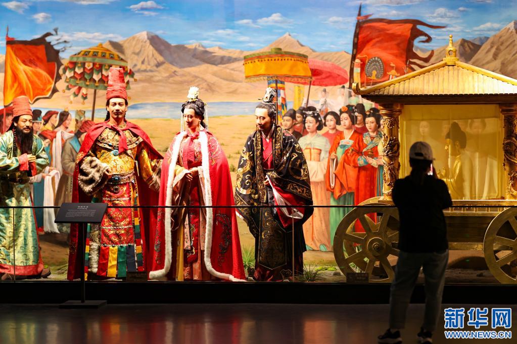 游客在西藏博物館參觀文成公主進(jìn)藏場景展示(5月17日攝)。新華社記者 姜帆 攝