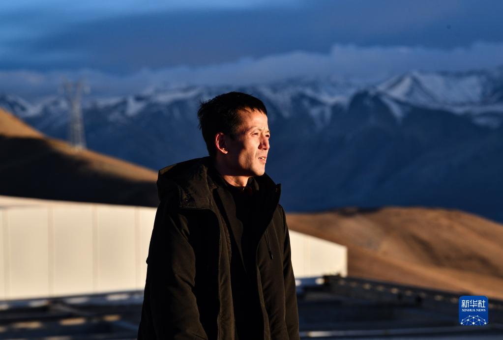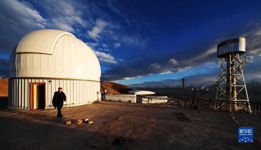 5月24日,日落時分,在阿里天文臺,尤顯龍走出望遠(yuǎn)鏡圓頂。新華社記者 費(fèi)茂華 攝