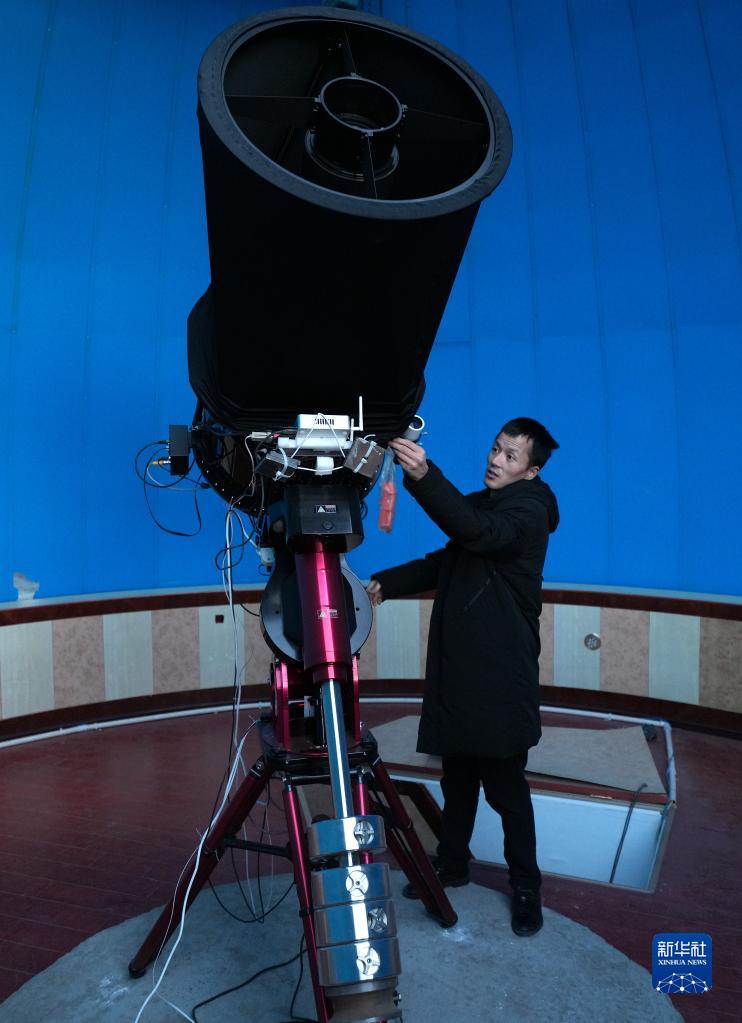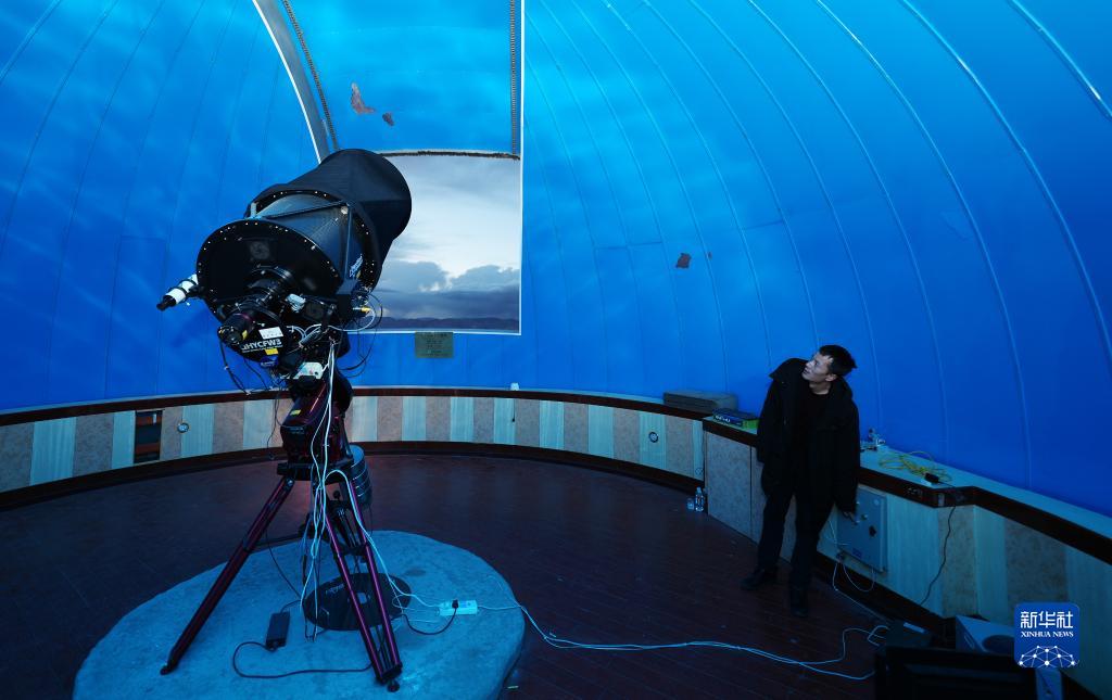 5月24日,在阿里天文臺,尤顯龍?jiān)谡{(diào)試望遠(yuǎn)鏡。新華社記者 費(fèi)茂華 攝