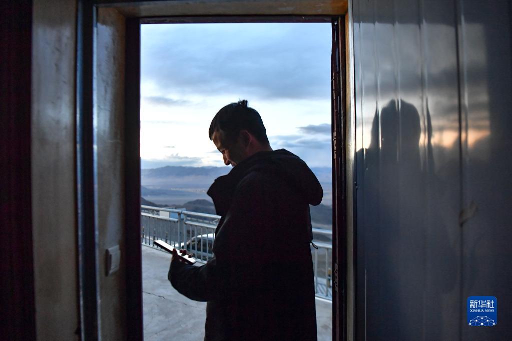 工作之余,尤顯龍用手機(jī)與家人聊天(5月24日攝)。新華社記者 晉美多吉 攝