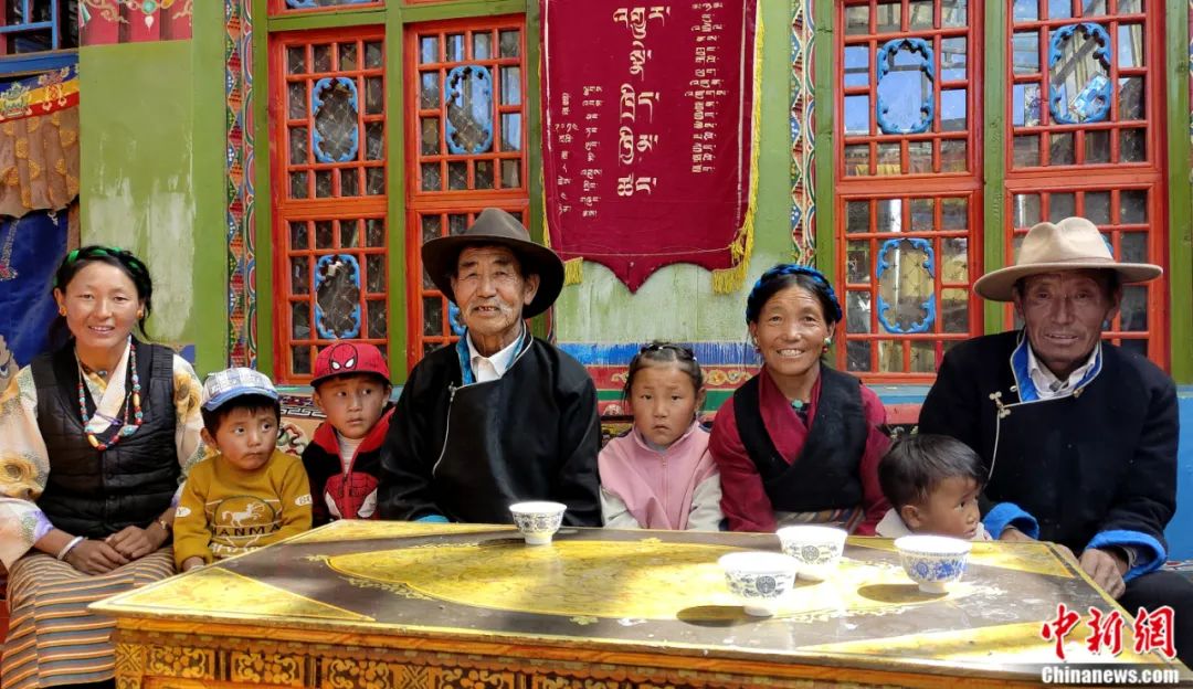 西藏日喀則市謝通門(mén)縣農(nóng)牧區(qū)脫貧致富家庭的“四世同堂”合影。貢桑拉姆 攝
