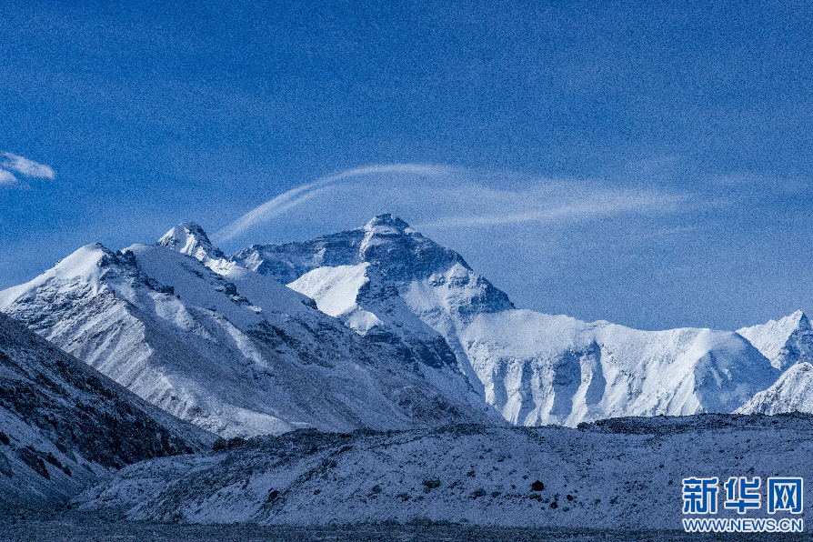 從絨布寺附近拍攝的珠穆朗瑪峰。 新華網(wǎng) 旦增努布 攝