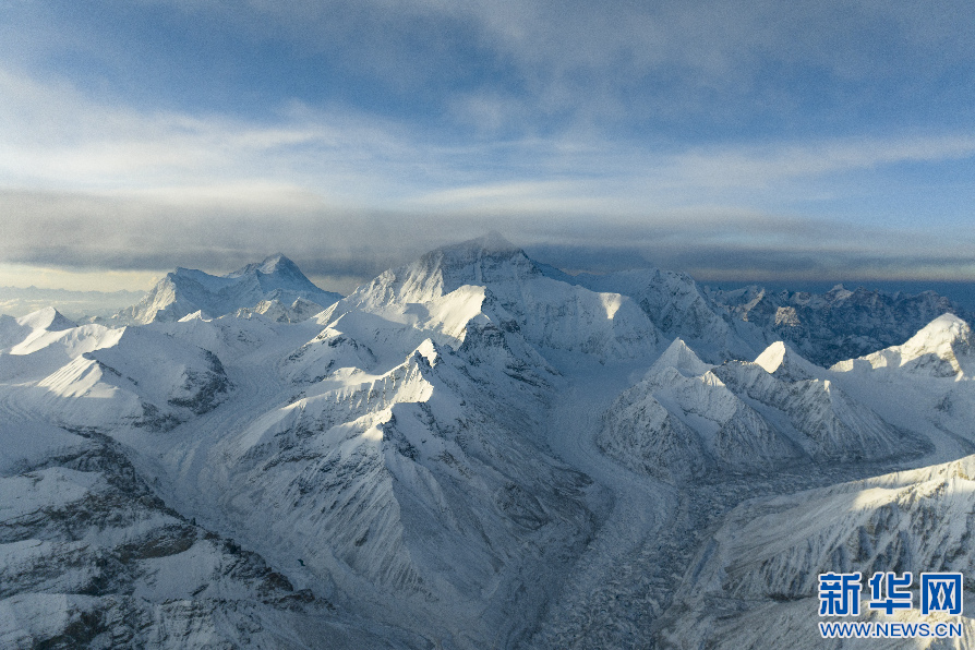 在海拔8000米左右拍攝的珠穆朗瑪峰(無人機(jī)照片)。 新華網(wǎng) 旦增努布 攝