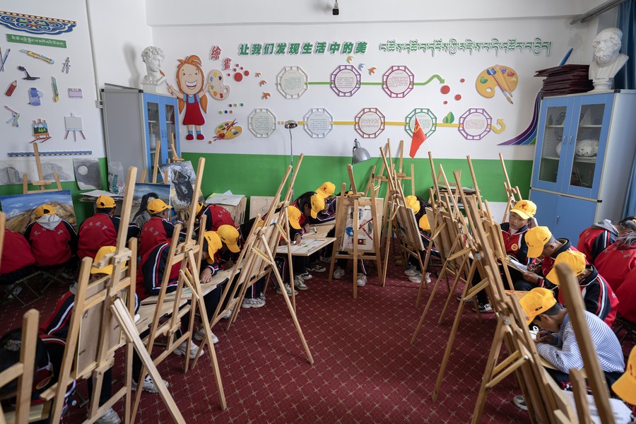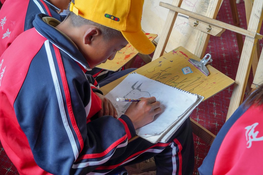 6月5日,阿旺尼曲在上美術(shù)課。