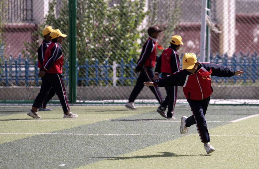 6月5日,扎西宗鄉(xiāng)完全小學的學生在上體育課。
