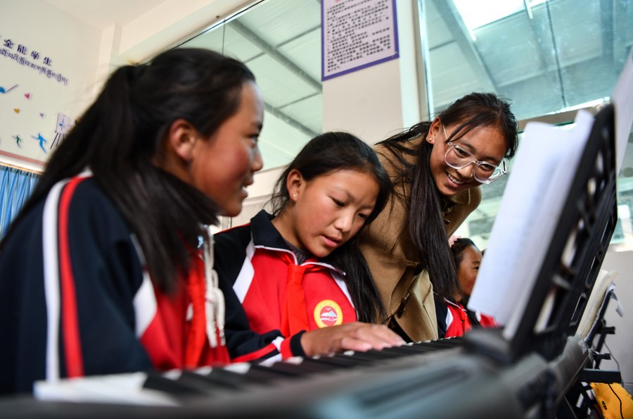 正在學習鋼琴的旦增吉宗對于上學有更深刻的認識,她的爺爺奶奶沒有上過學,一輩子從事農(nóng)業(yè)生產(chǎn);父親上過初中,母親是小學畢業(yè),他們經(jīng)過培訓成了村里的鄉(xiāng)村醫(yī)生?!鞍职謰寢屪屛液煤脤W習,爭取考上大學,成為家里的第一個大學生?!钡┰黾谡f。