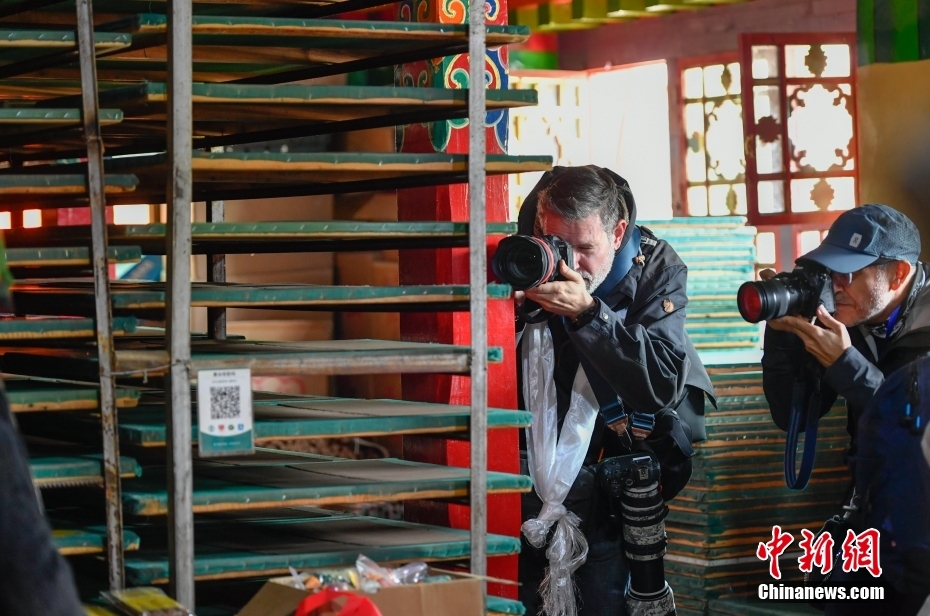 6月15日,西藏拉薩,記者們在尼木縣非遺工坊(藏紙制作廠)采訪拍攝。在第五屆中國西藏旅游文化國際博覽會召開之際,國務(wù)院新聞辦組織中外媒體記者赴西藏采訪,路透社、共同社、西班牙埃菲社、意大利安莎社、新加坡《聯(lián)合早報》和中央廣電總臺、中國日報等15家媒體的20名記者參加。6月15日,采訪團一行前往拉薩市尼木縣參訪體驗西藏傳統(tǒng)藏香、藏紙文化。