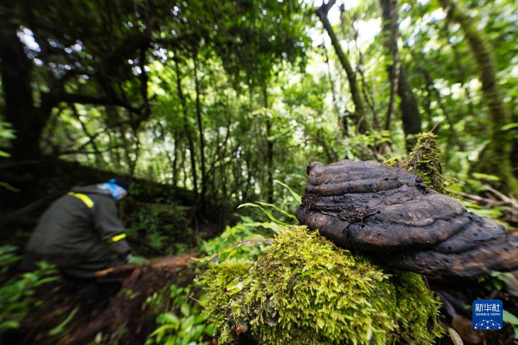 6月15日,在尋找亞洲第一高樹的路上發(fā)現(xiàn)的靈芝。新華社記者 費(fèi)茂華 攝