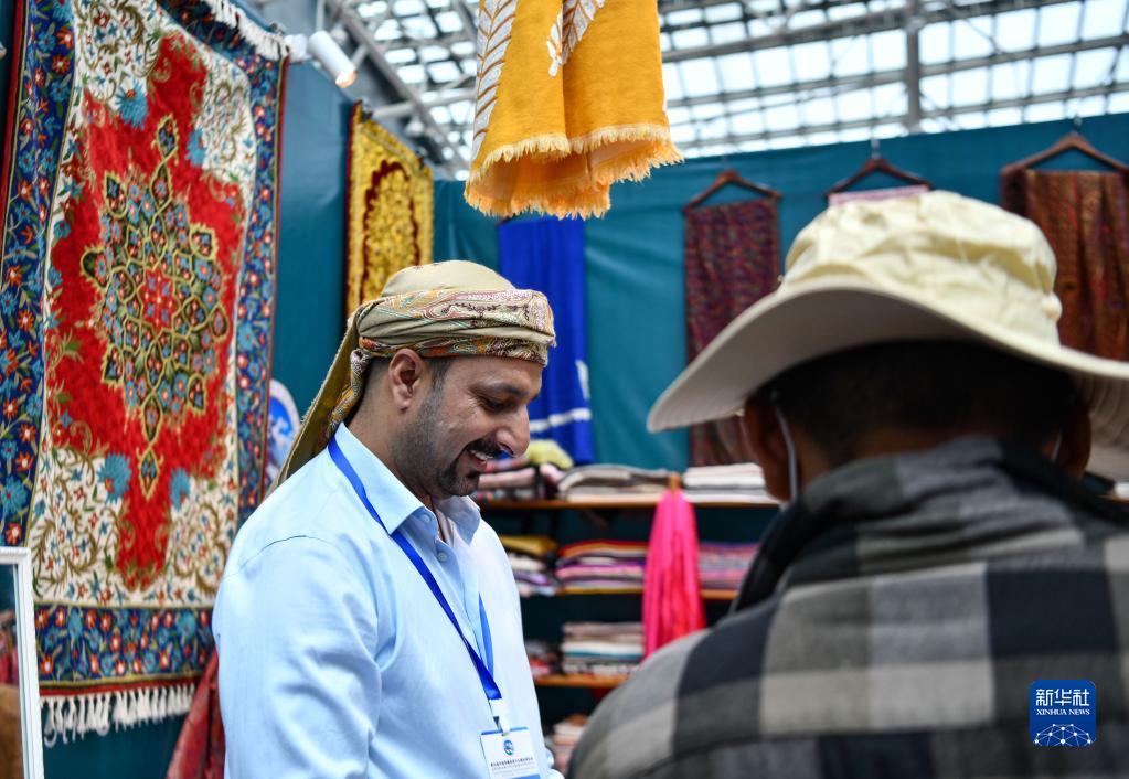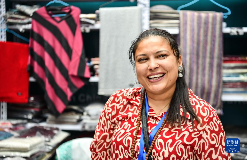 這是展會上的尼泊爾商人(6月18日攝)。新華社記者 晉美多吉 攝