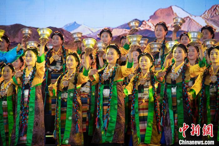 開幕式上,由300架無人機組成的暖場表演在日喀則珠峰文化旅游創(chuàng)意產(chǎn)業(yè)園區(qū)上空精彩呈現(xiàn),組成“珠峰故里、吉祥日喀則,歡迎您!”等陣型。匠心獨運的創(chuàng)意設計,流光溢彩的聲光電效果,以恢弘氣勢和華麗造型,展示日喀則的開放包容。文藝表演由序《珠峰頌歌》、上篇《戀上青稞》、下篇《極境暢想》和尾聲《吉祥日喀則》組成。聲,是情的流露;舞,是意的表達。文藝演出將民眾的生活與藝術相結合,融合傳統(tǒng)文化與現(xiàn)代歌舞等藝術形式,既富有傳統(tǒng)特色又極具時代魅力,將日喀則各族人民的喜悅和游情盡情抒發(fā),充分表達了日喀則各族人民對美好生活的熱愛和對祖國的祝福歌頌。