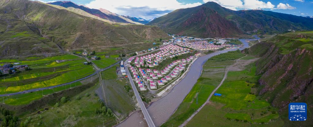 6月22日在國道317線昌都段拍攝的丁青縣的村莊(無人機(jī)照片)。新華社記者 姜帆 攝