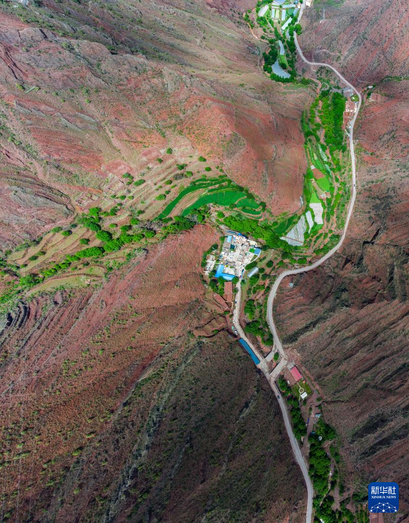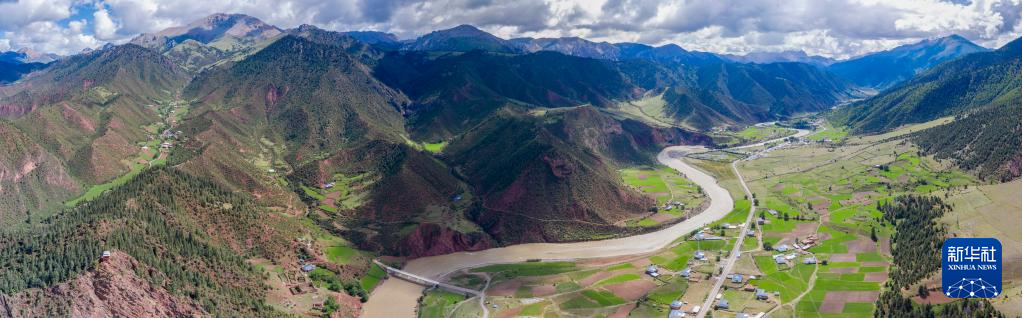 6月22日在國道317線昌都段類烏齊縣附近拍攝的河谷景觀(無人機(jī)照片)。新華社記者 姜帆 攝