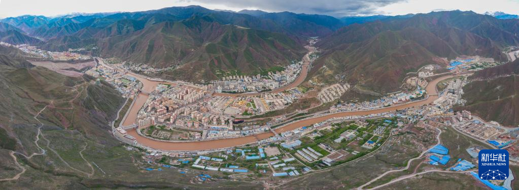 6月22日在國道317線昌都段拍攝的丁青縣尺牘鎮(zhèn)全景(無人機(jī)照片)。新華社記者 姜帆 攝