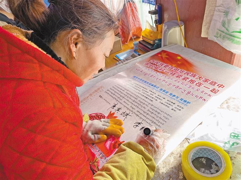 圖為那曲市索縣開展“鑄牢中華民族共同體意識·我承諾、我參與、我維護(hù)”主題活動中,居民在簽承諾書。