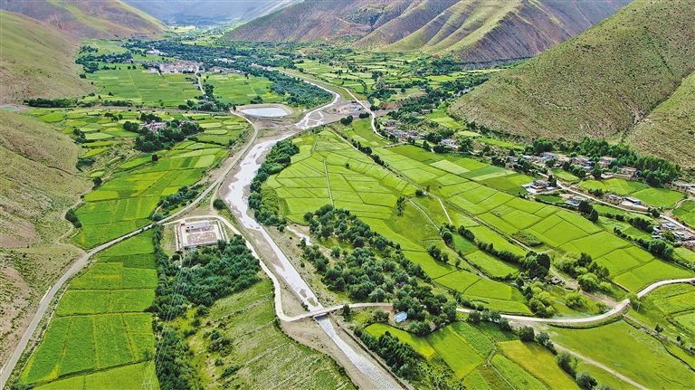 圖為瓊結(jié)縣加麻鄉(xiāng)縱橫交錯(cuò)的農(nóng)村公路。記者 劉楓 攝