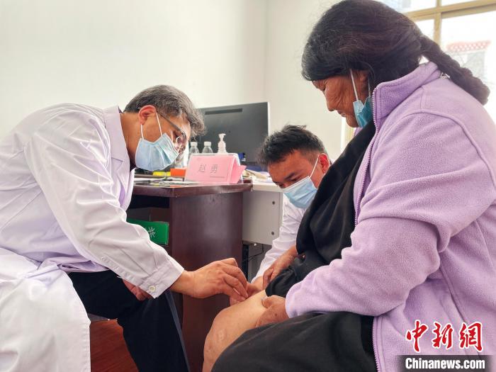 在他的專門診室外排滿了步履蹣跚的老人,膝蓋疼、腰疼、腿疼是這個診室內聽到最多的患者主訴,為了掌握病人按壓疼痛反饋,趙勇迅速學會了藏語“疼不疼”的說法。定位、消毒、進針、松解、出針一套動作一氣呵成,排隊的老人對這樣的治療充滿好奇和期待。