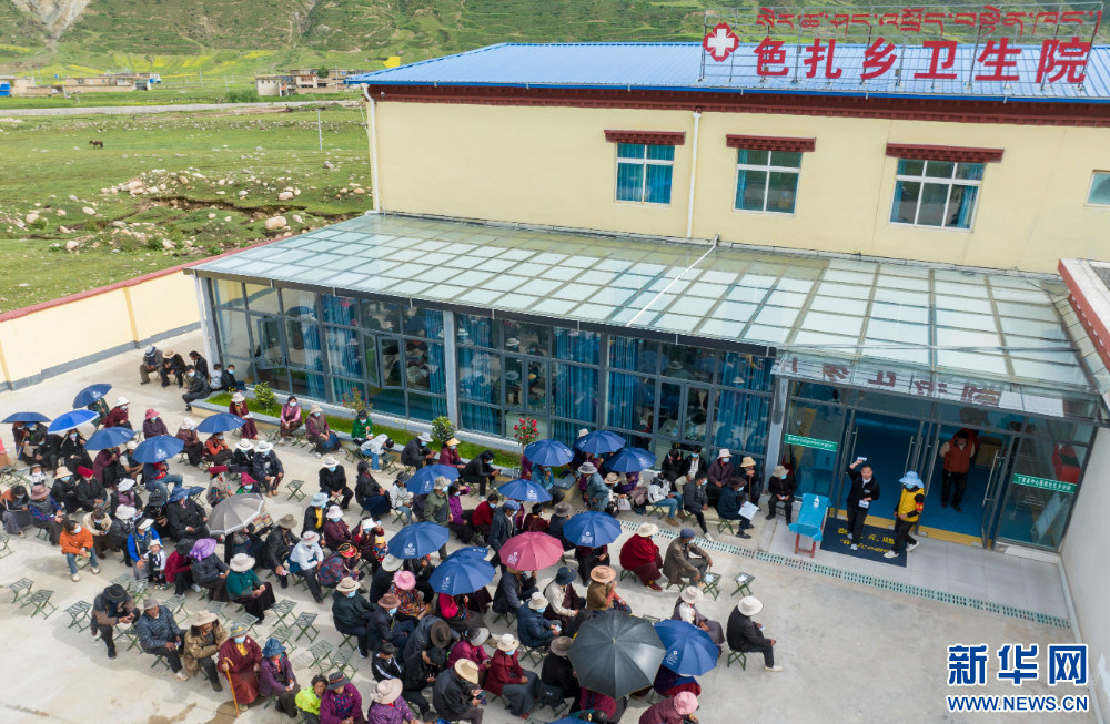 7月10日,群眾在西藏丁青縣色扎鄉(xiāng)衛(wèi)生院內(nèi)排隊等待北京醫(yī)療人員。新華網(wǎng) 旦增努布 攝